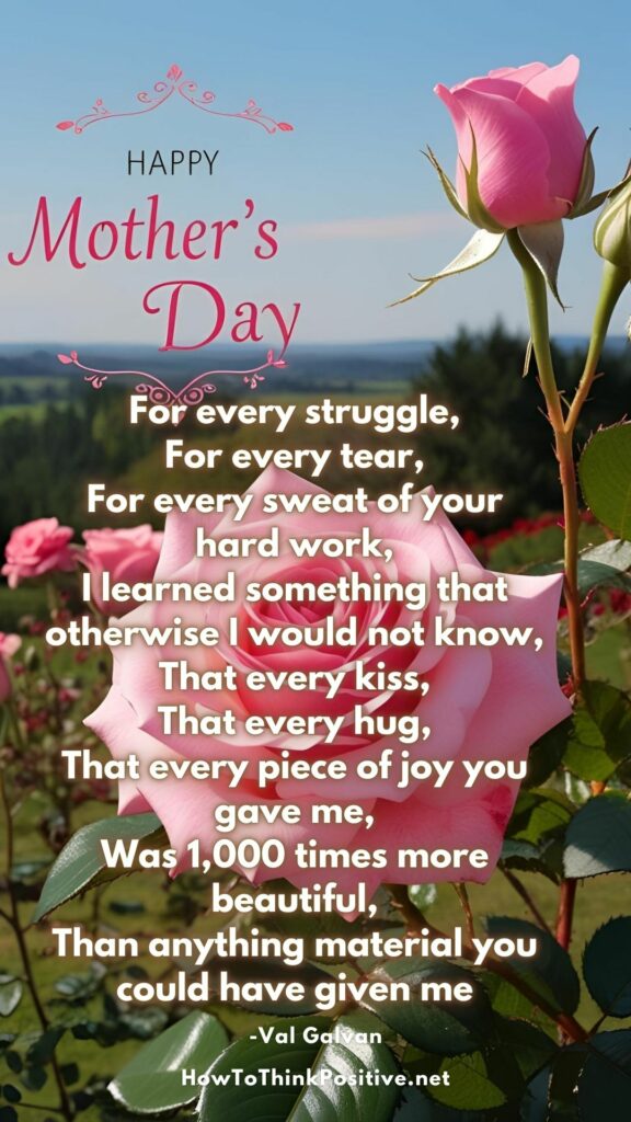 You’ll never find the perfect words to tell your mom how much she means to you. These poems capture those deep feelings you struggle to voice – the endless love, the sleepless nights, the countless sacrifices she made to give you the best shot at life. Time to show her that you’ve noticed every single thing she’s done.